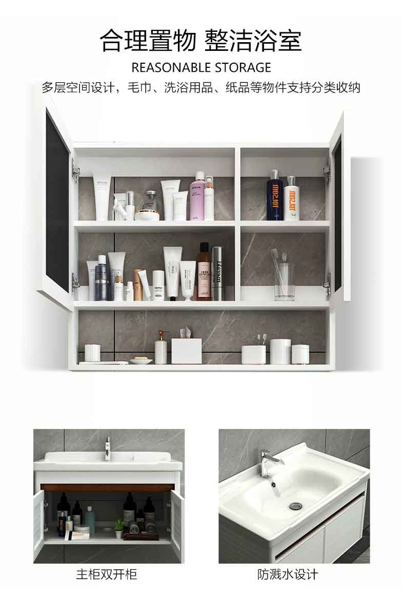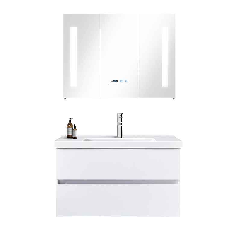Solid wood bathroom cabinet white double